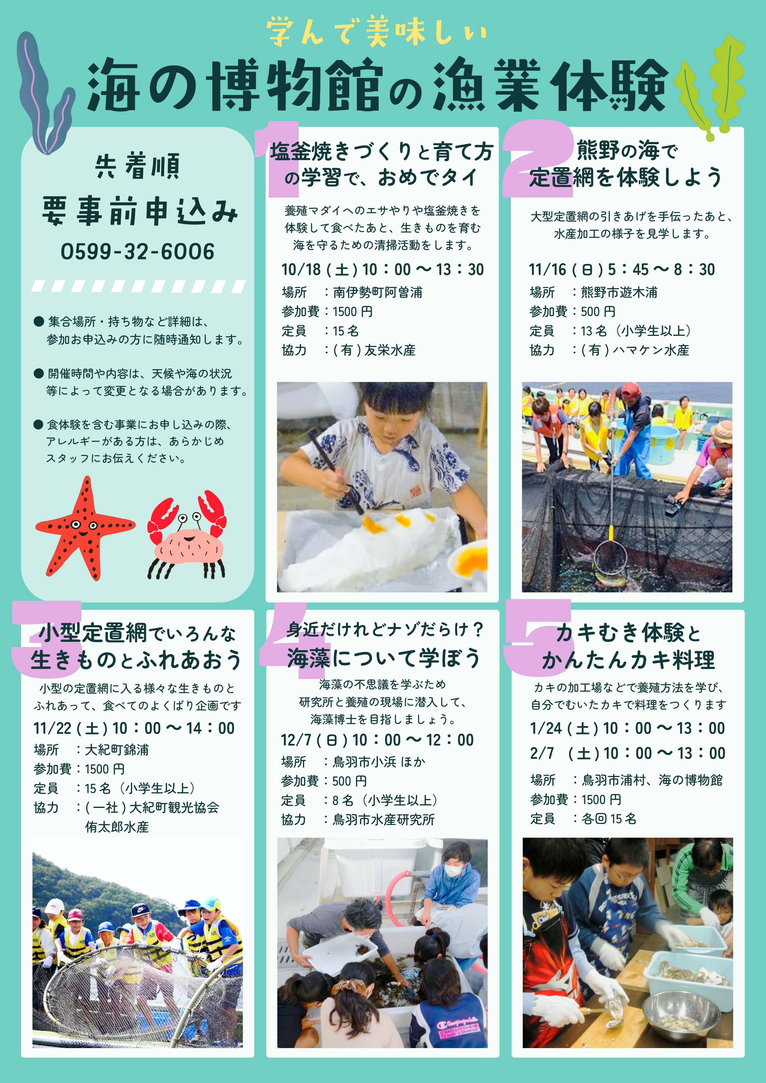 ●要申し込み(先着順)です。申し込みは 0599-32-6006