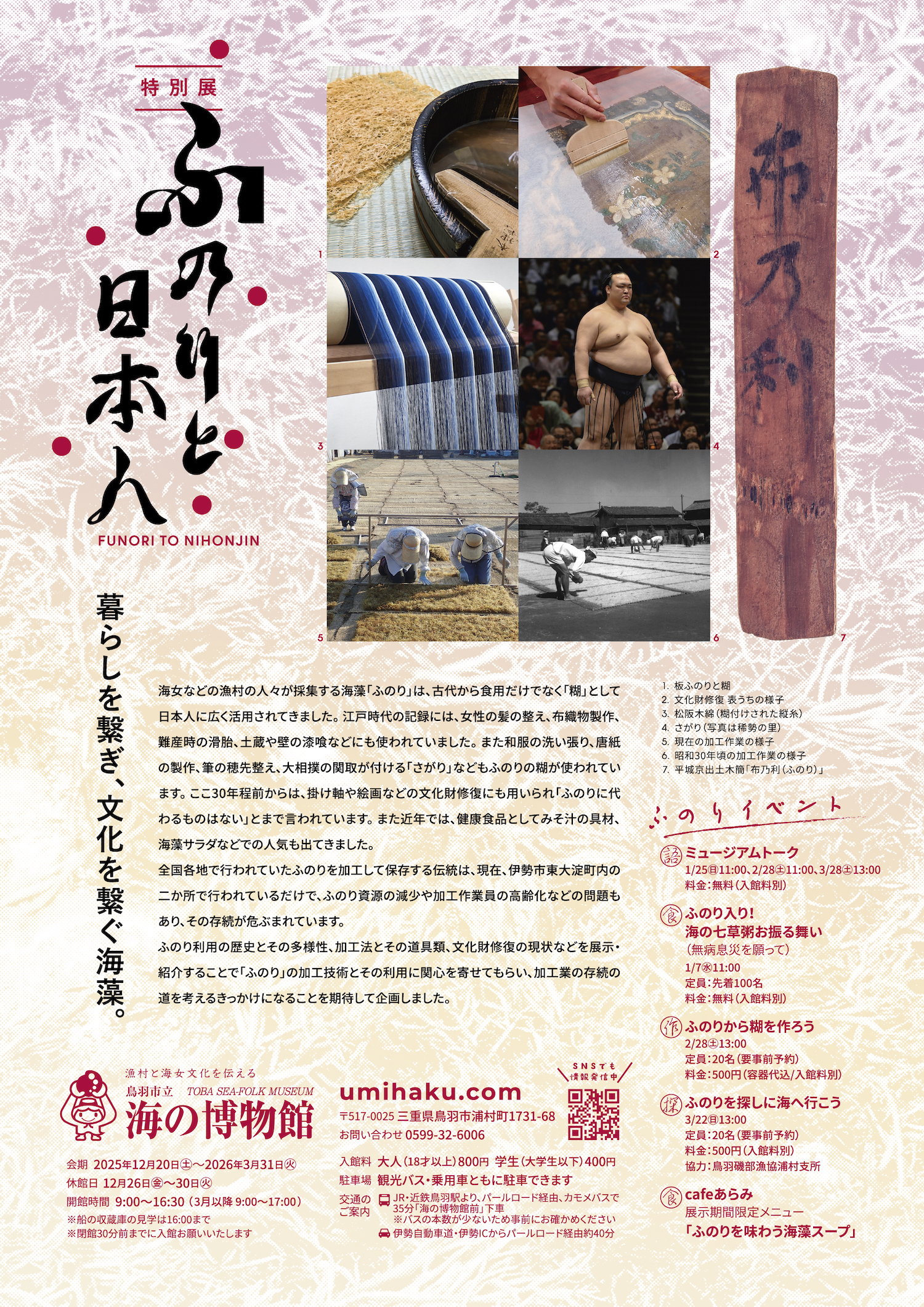 特別展「ふのりと日本人〜暮らしを繋ぎ、文化を繋ぐ海藻。〜」も一緒にお楽しみください。